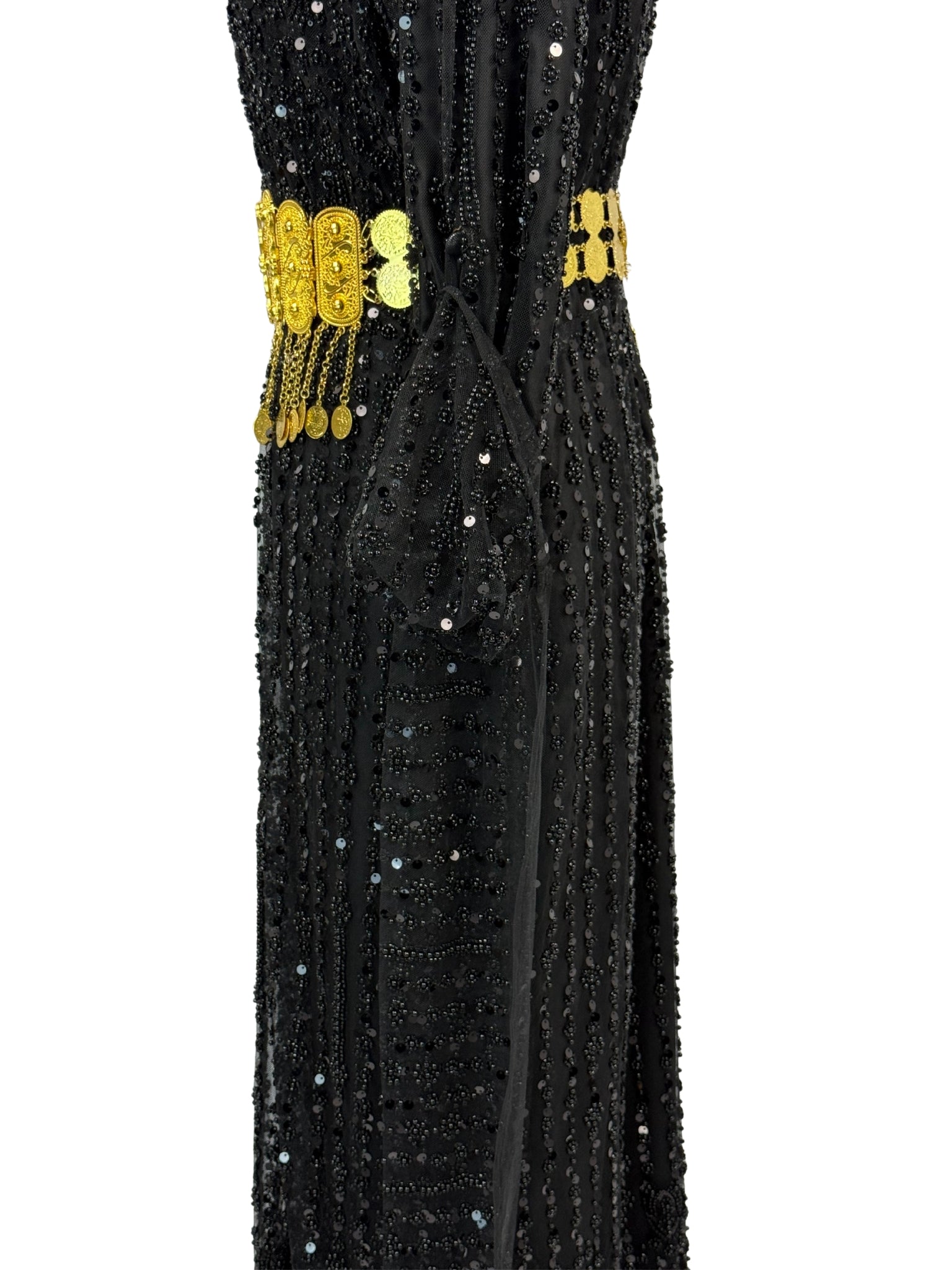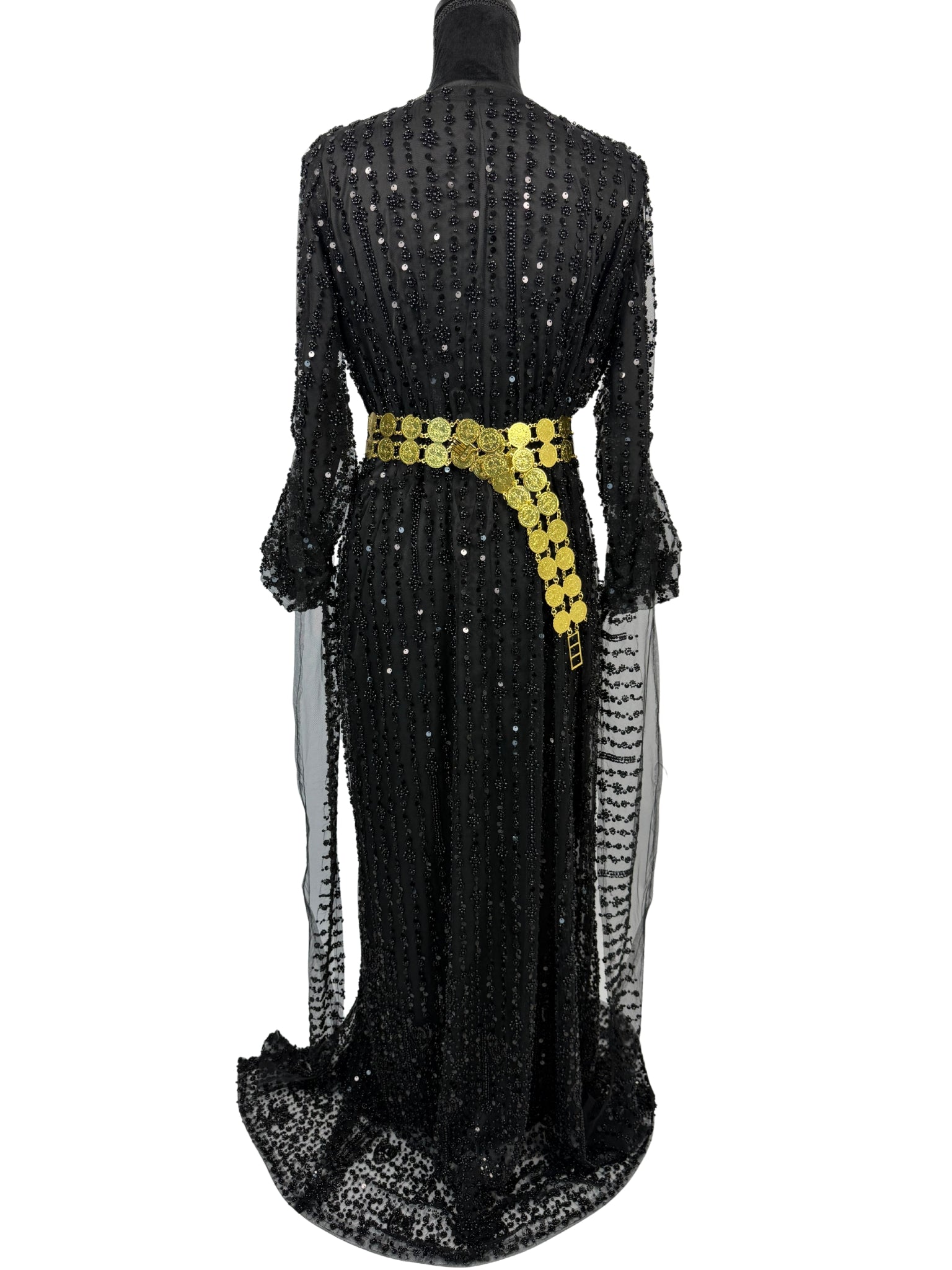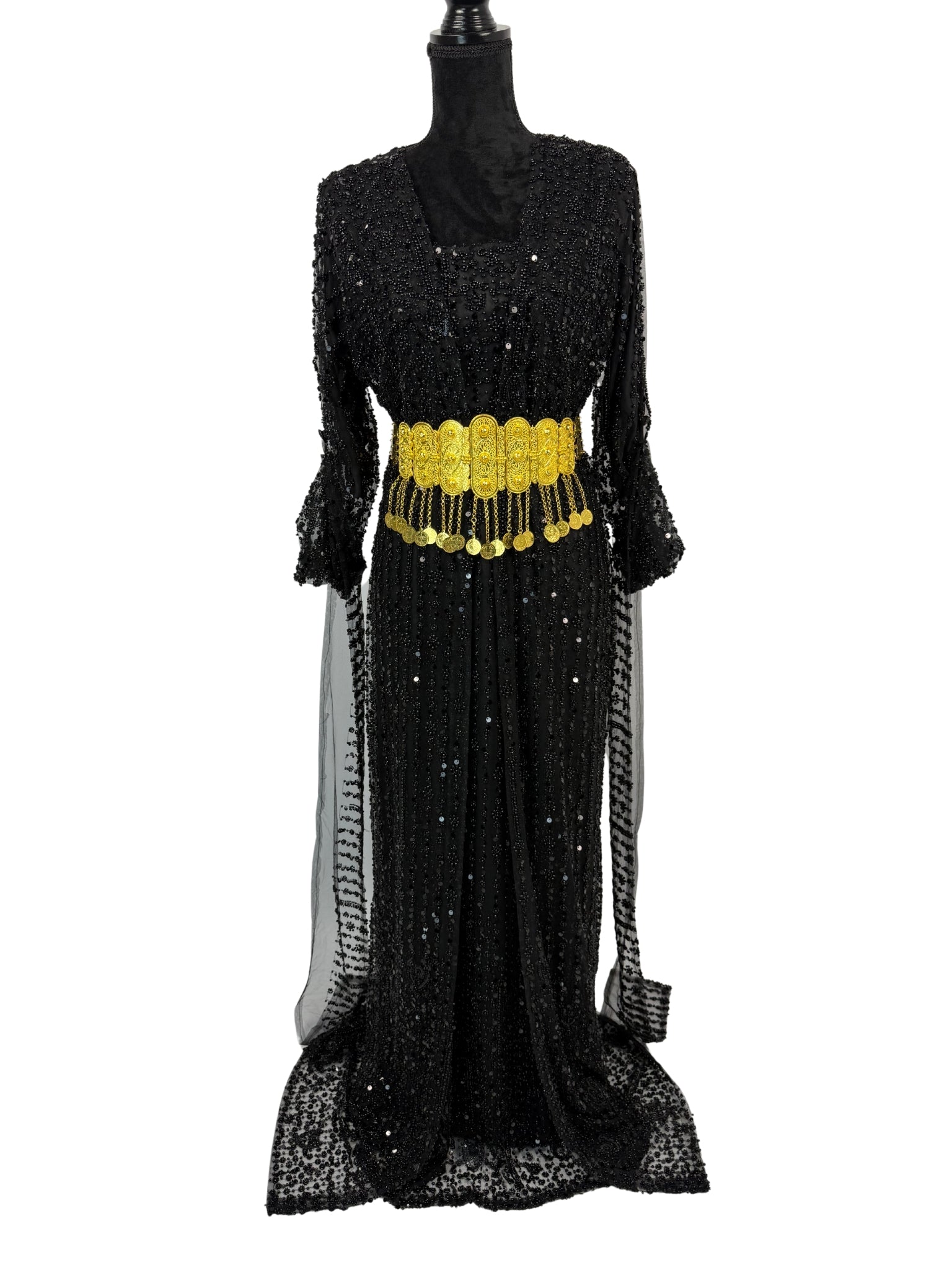 De Jilenpiroz Ziv is een luxe zwarte sev jile kurdi, volledig handgemaakt en rijk bezet met intens glinsterende kralen voor een echte full glam uitstraling. Het model heeft een open mouwdesign, waardoor de armen niet volledig bedekt zijn en de look modern en elegant blijft.