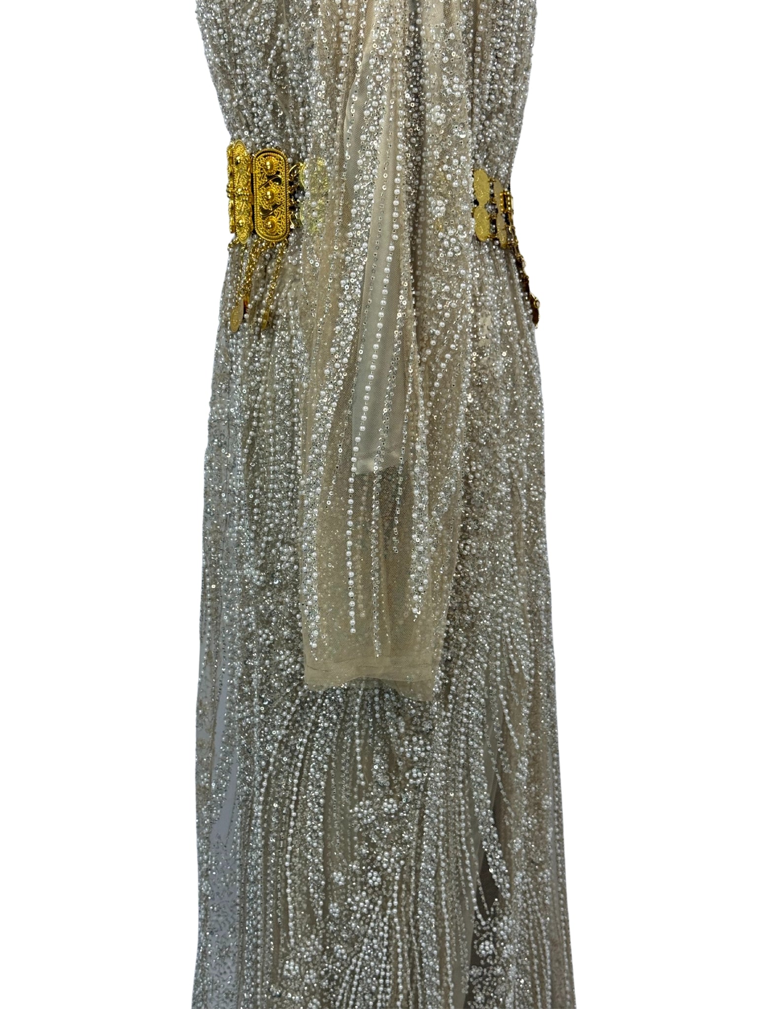 Jilenpiroz Zelam goudbeige Koerdische jurk met kralen – voorkant