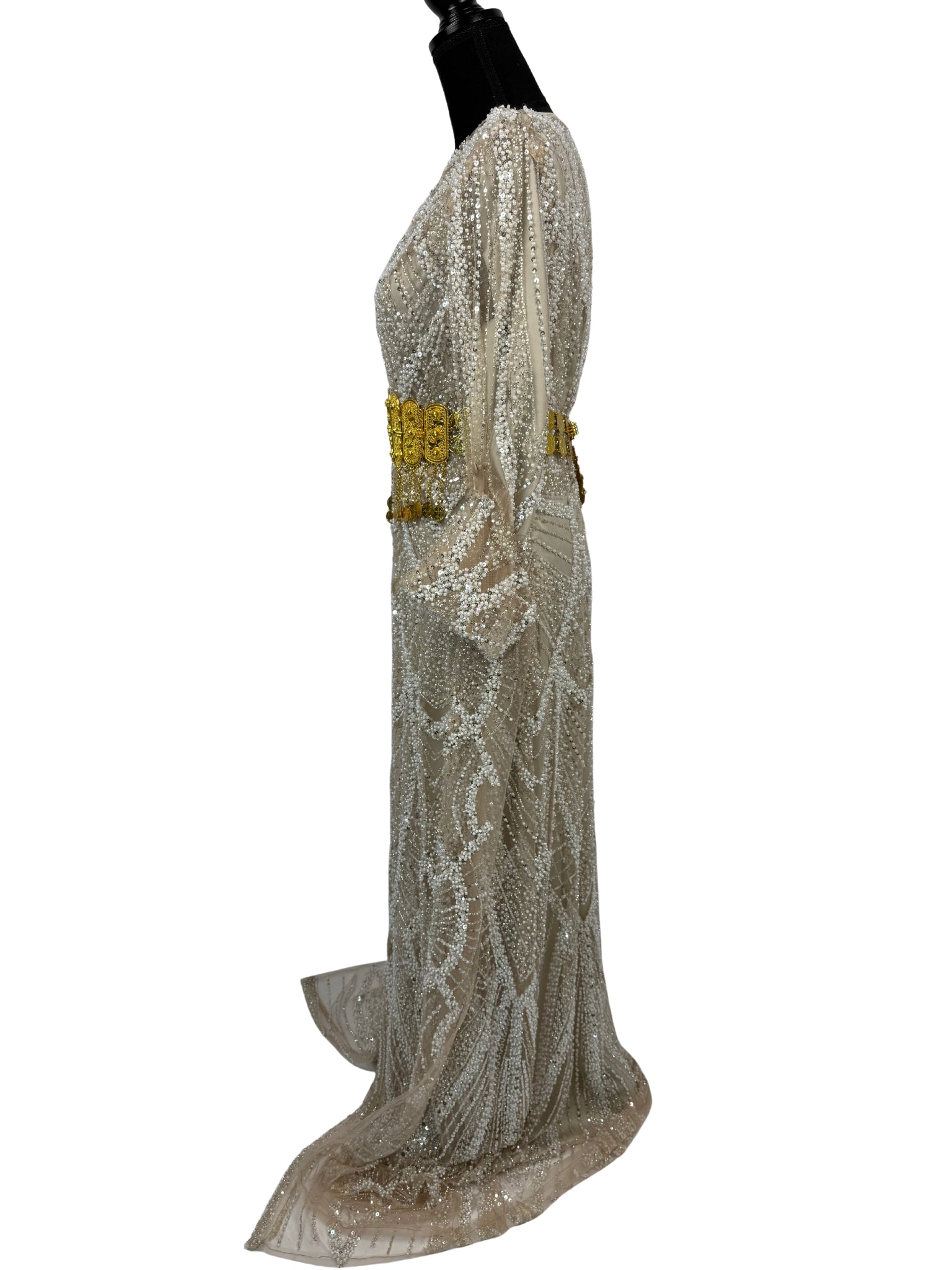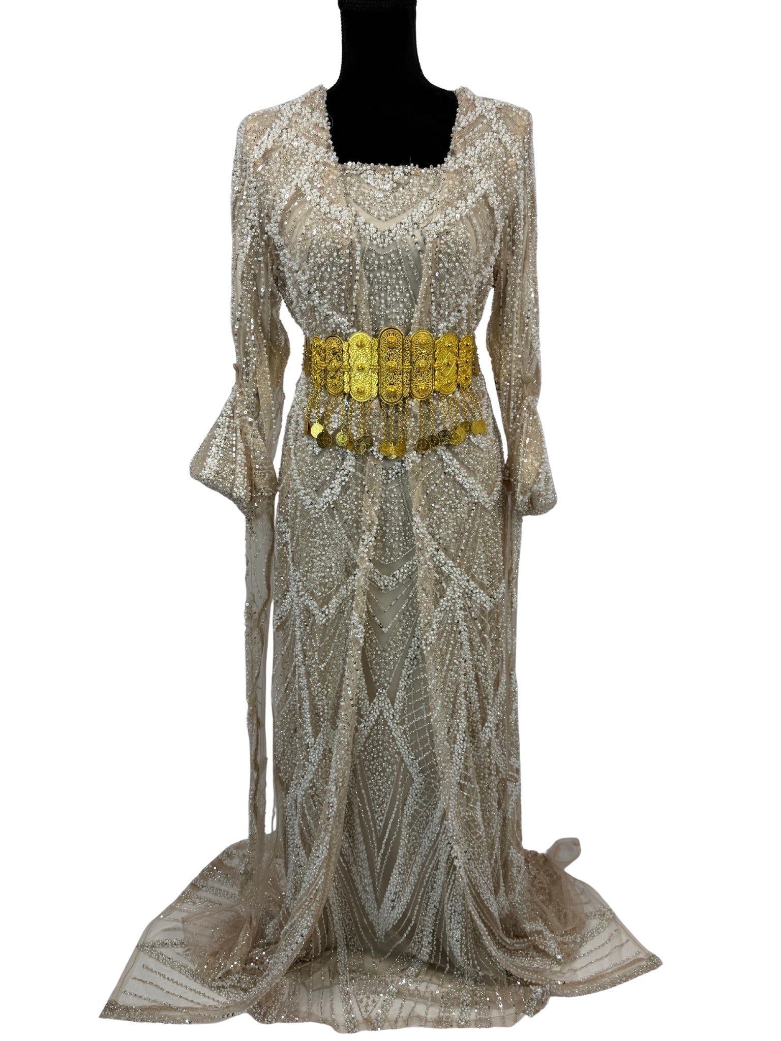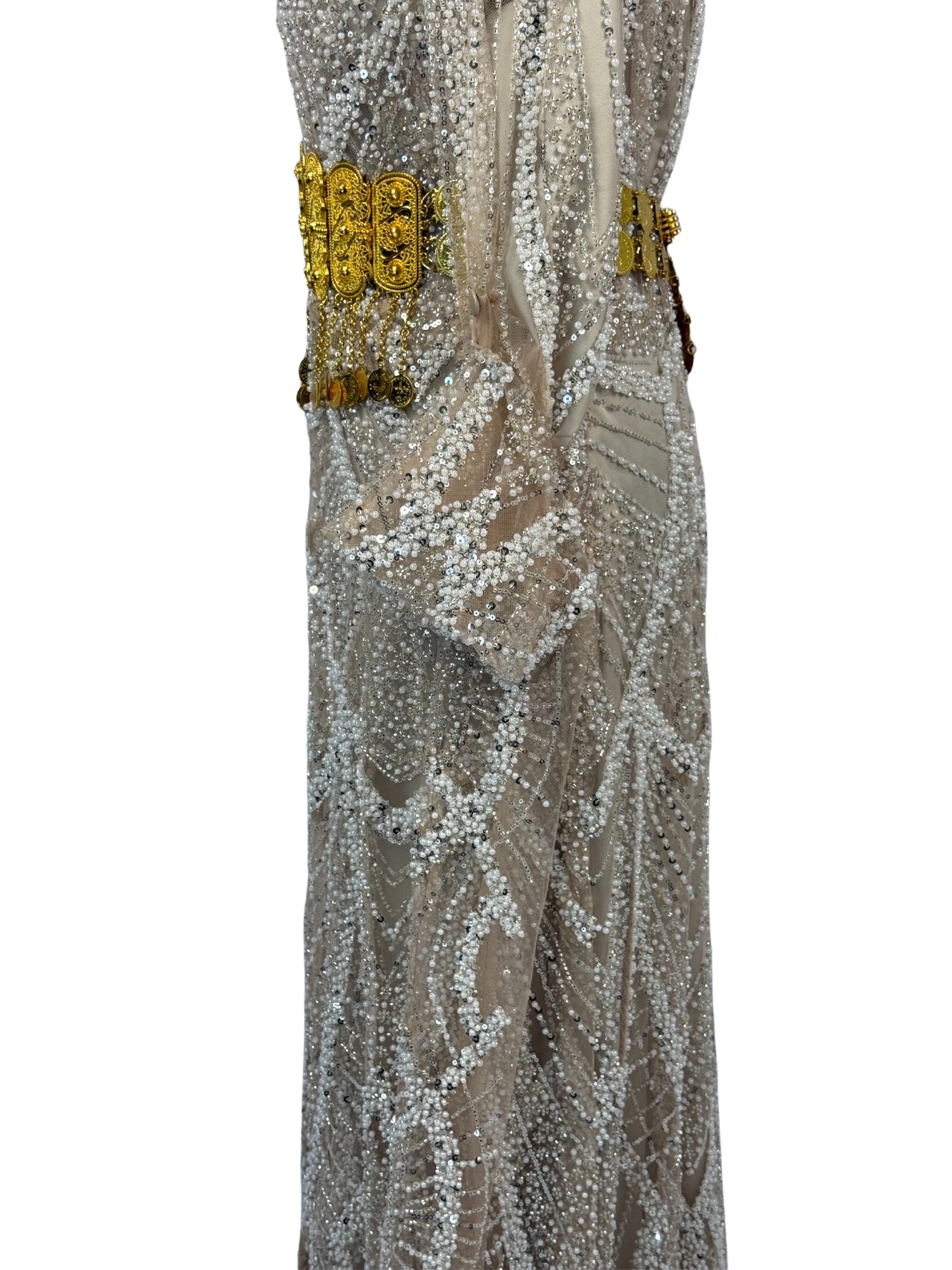 Jilenpiroz Zerin champagne Koerdische feestjurk met pailletten – voorkant